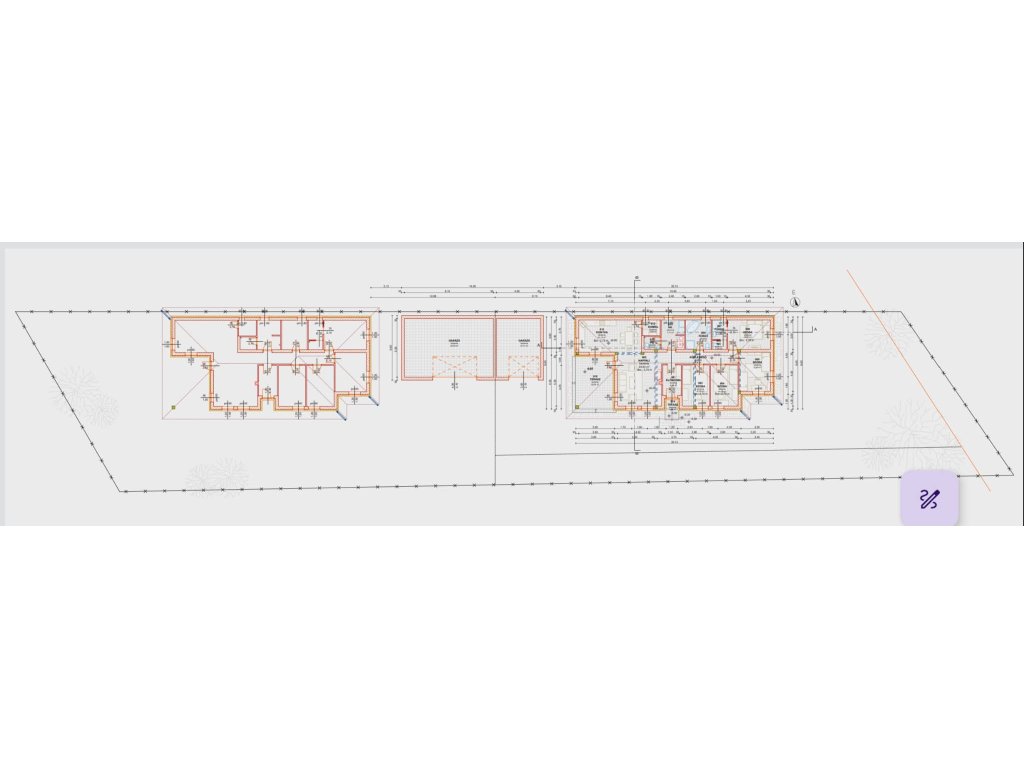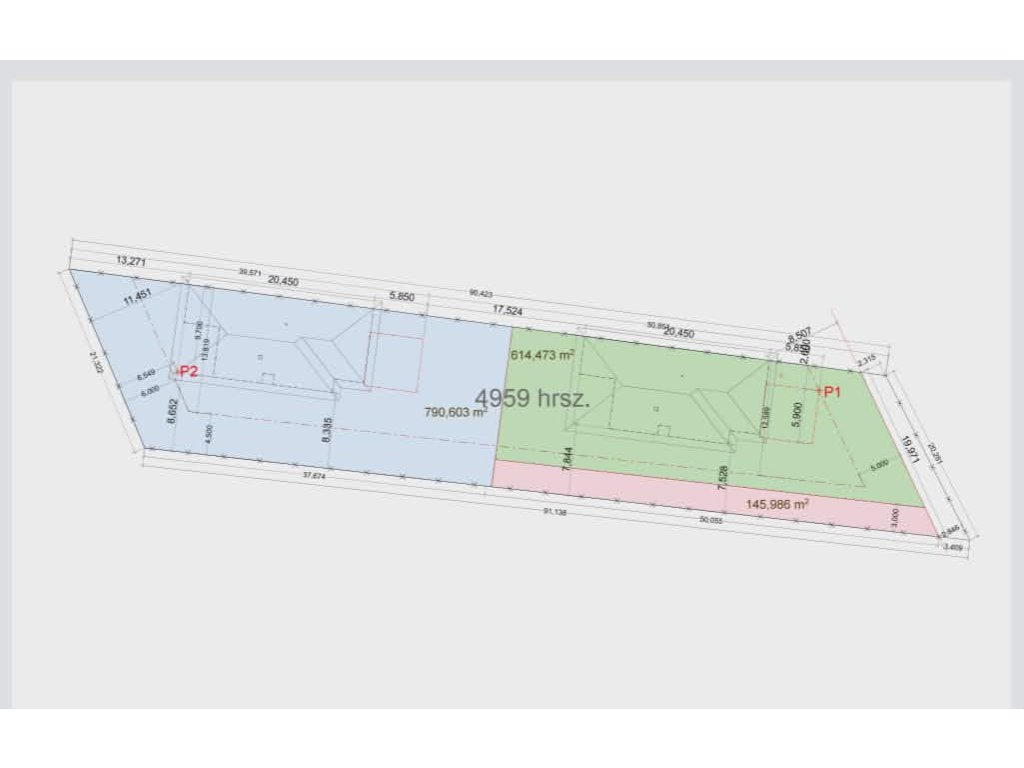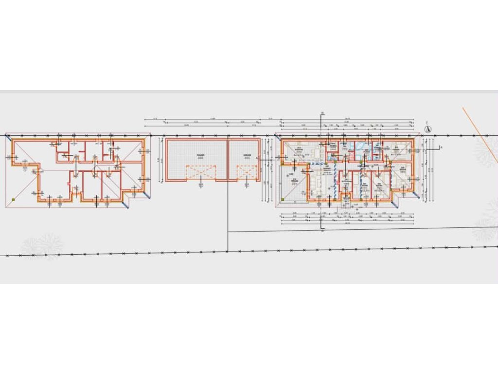 Akár két önálló lakrész is kialakítható (lásd két lakásos alaprajz). Igény esetén nagyméretű 54 m2-es garázs elhelyezhető a két épület között (lásd garázs alaprajz).