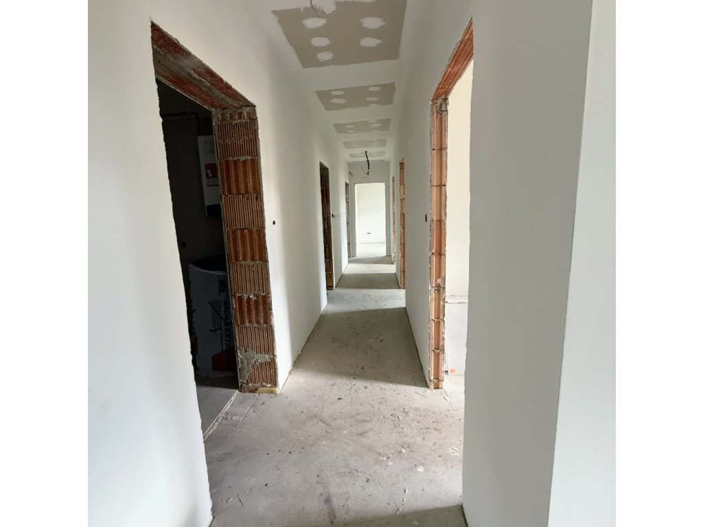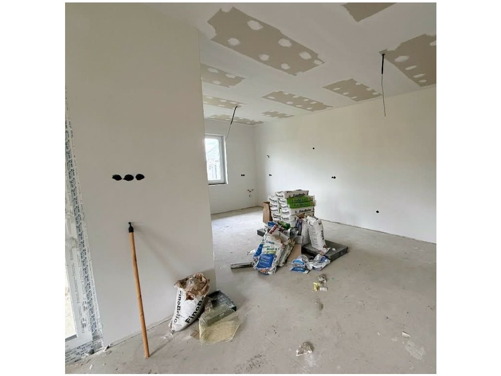 Kényelmes négy szoba nappalis elosztás dupla komforttal. Nagyméretű étkező konyha kamrával, külön háztartási helyiség (mosókonyha).